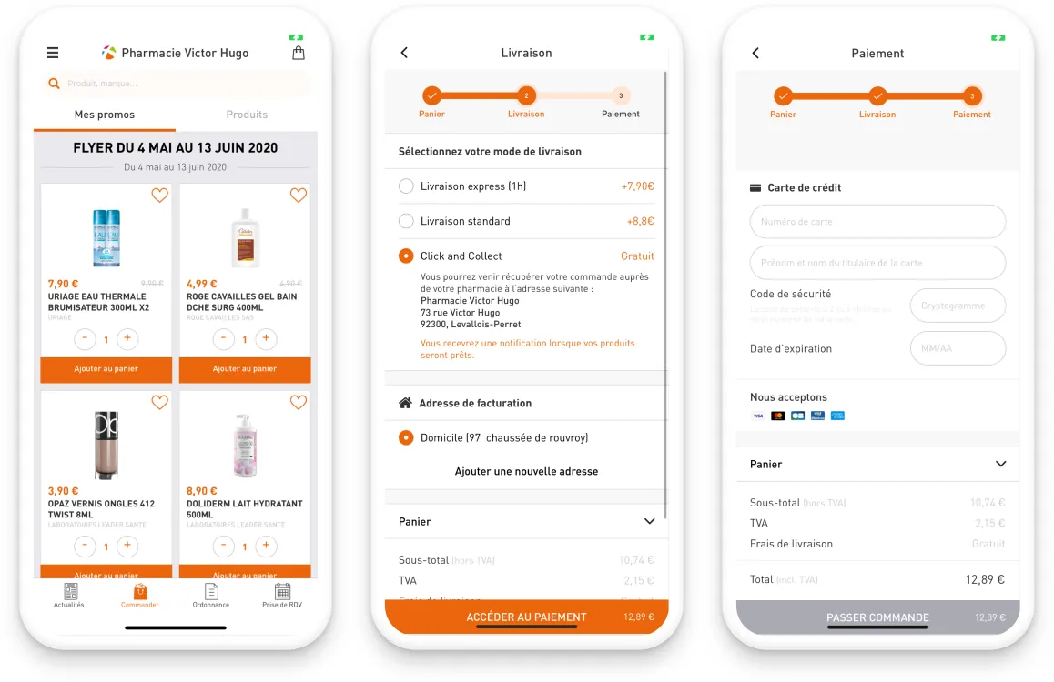 L’utilisateur a la possibilité de scanner son ordonnance qui est transmise au pharmacien pour qu’il puisse préparer sa commande en avance. Il peut également y joindre sa mutuelle, l'attestation de droits et son numéro de sécurité sociale. Le pharmacien notifie le client dès que sa commande est prête pour qu’il puisse passer la récupérer. Le Click and Collect permet de limiter le temps d’attente du client.