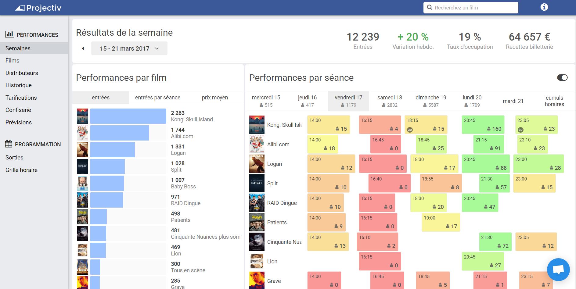 Projectiv was developed to solve this problem in just a few clicks: an algorithm generates the optimal programming grid, maximising the cinema’s revenue through attendance forecasts.