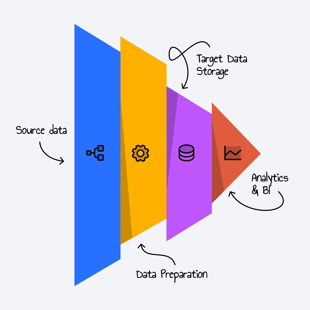 Load: Data is ingested into scalable storage systems.